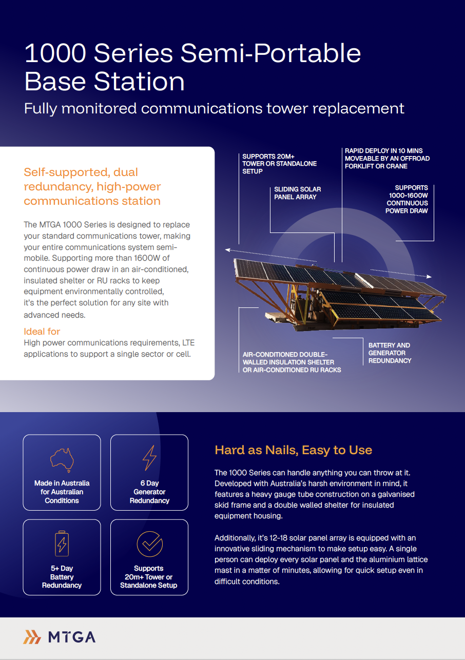The 1000 Series can handle anything you can throw at it. Developed with Australia’s harsh environment in mind, it features a heavy gauge tube construction on a galvanised skid frame and a double walled shelter for insulated equipment housing.